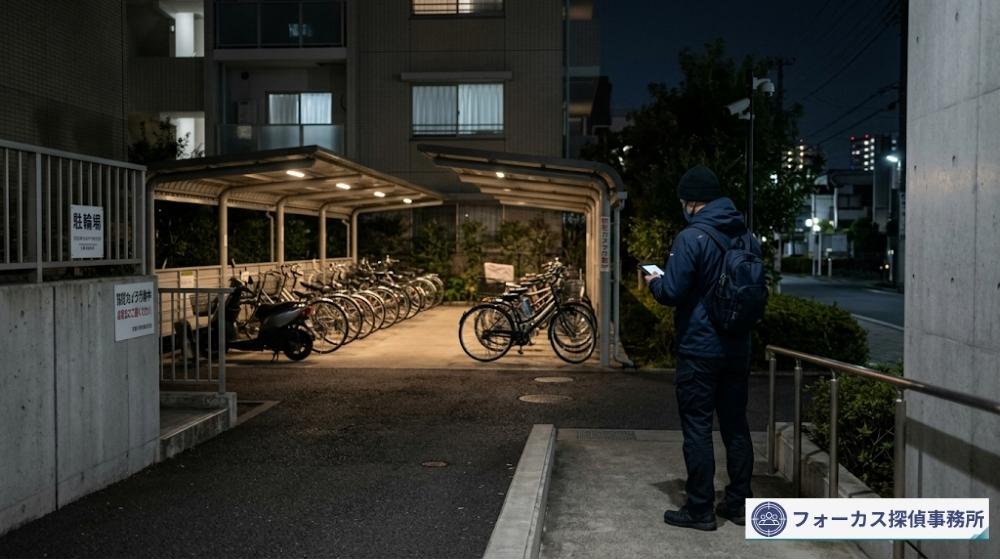 今回のケースでは、深夜帯の張り込みを1週間継続し、駐輪場周辺で不審な動きがないかを確認しました。
