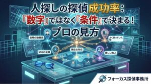 フォーカス探偵事務所にご依頼いただく最大のメリットは、単に「代わりに探す」ことではありません。情報整理から当たりのつけ方、そして何より「相手に絶対に警戒されない安全なアプローチ」までを、プロの戦略として組み立てられることにあります。
